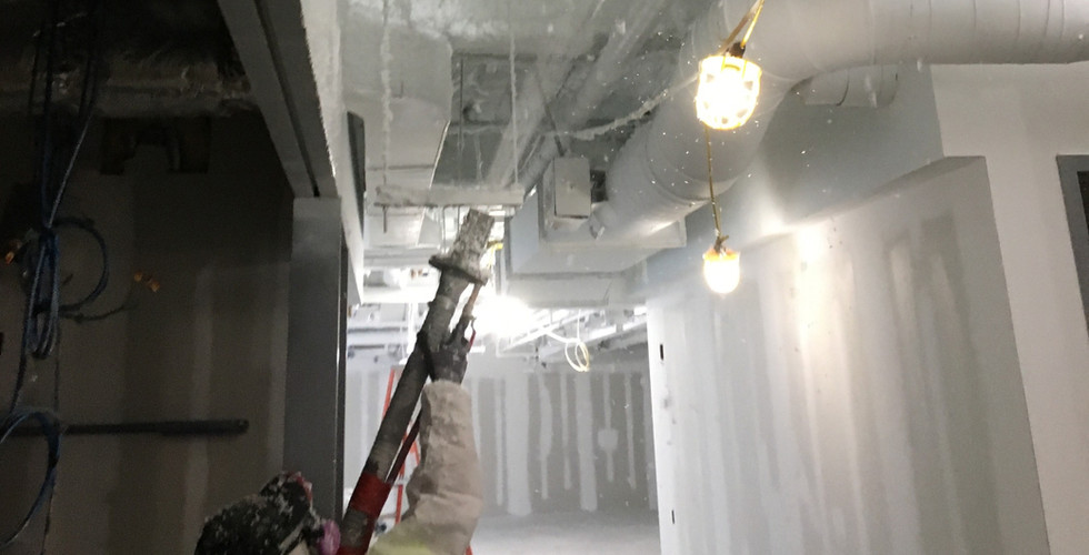 This project was a part of the 44,000 SF renovation of Medidata Solutions' Boston office located on the 6th floor of the 185 Franklin Street Building in Downtown Boston. Select Spray Systems was hired to apply 25,000 SF of white Sonoglass and 3,200 SF of black-tinted Sonoglass. Thermal acoustical spray was applied to the exposed underside of the slab areas, leaving the majority of the concrete beams to remain as exposed concrete. Existing beams were protected from the spray during installation. Thermal insulation was applied at an 8/10” thickness to achieve a .75 NRC rating.